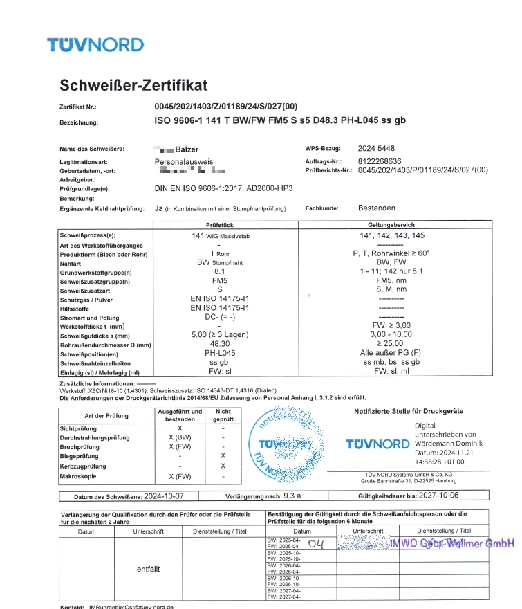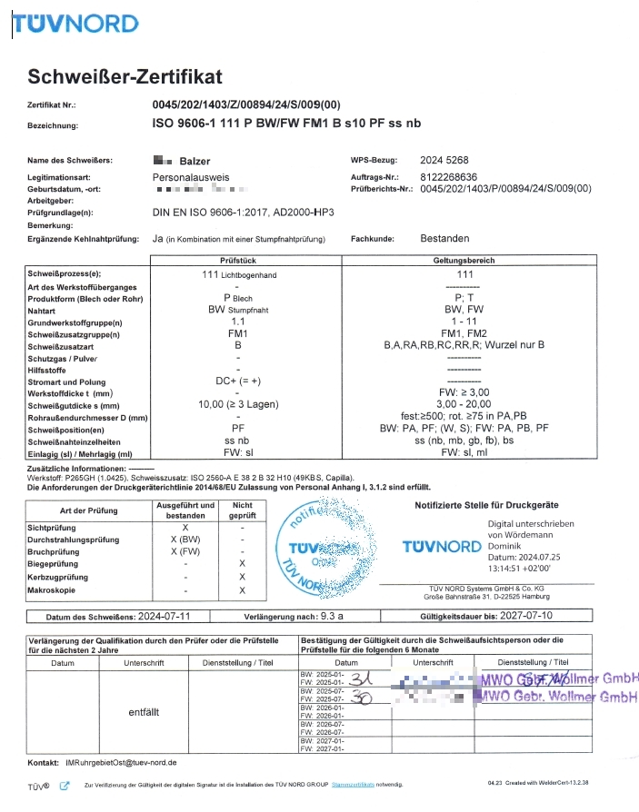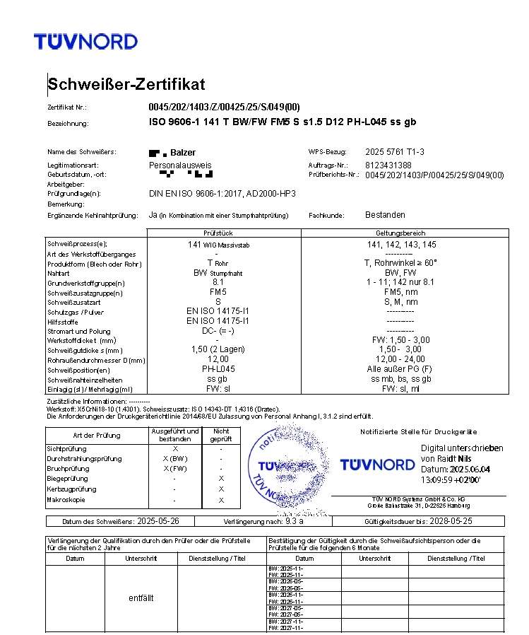 Schweißerprüfungen Mitarbeiter Balzer